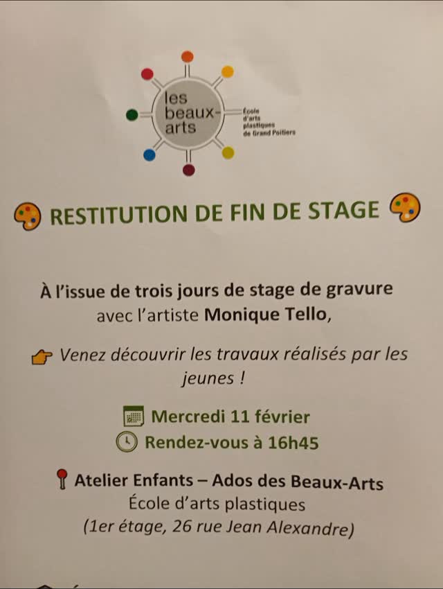Découvrez les stages proposés par les Beaux-Arts de février à avril