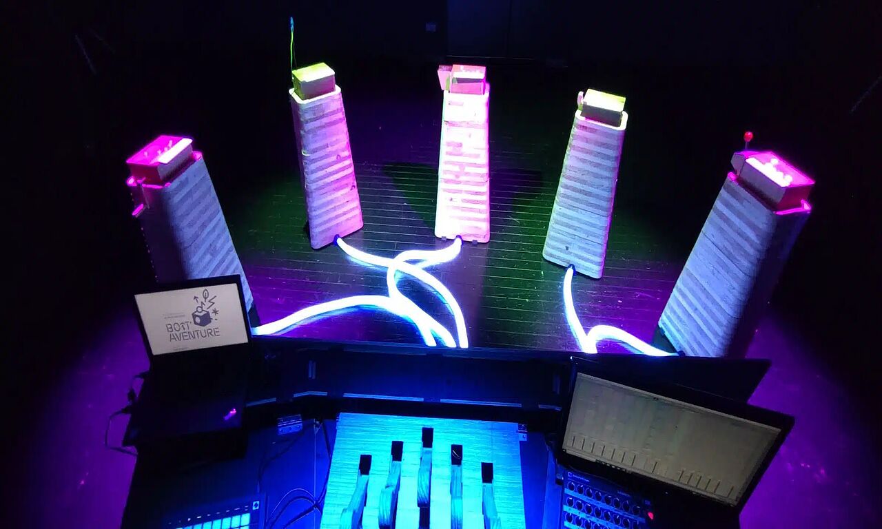 Dispositif musical ludique et coopératif, alliant 5 instruments électroniques à interface intuitive et décalée. Les Boitaphones permettent aux participantes et participants de jouer en transformant une matière musicale déjà composée.