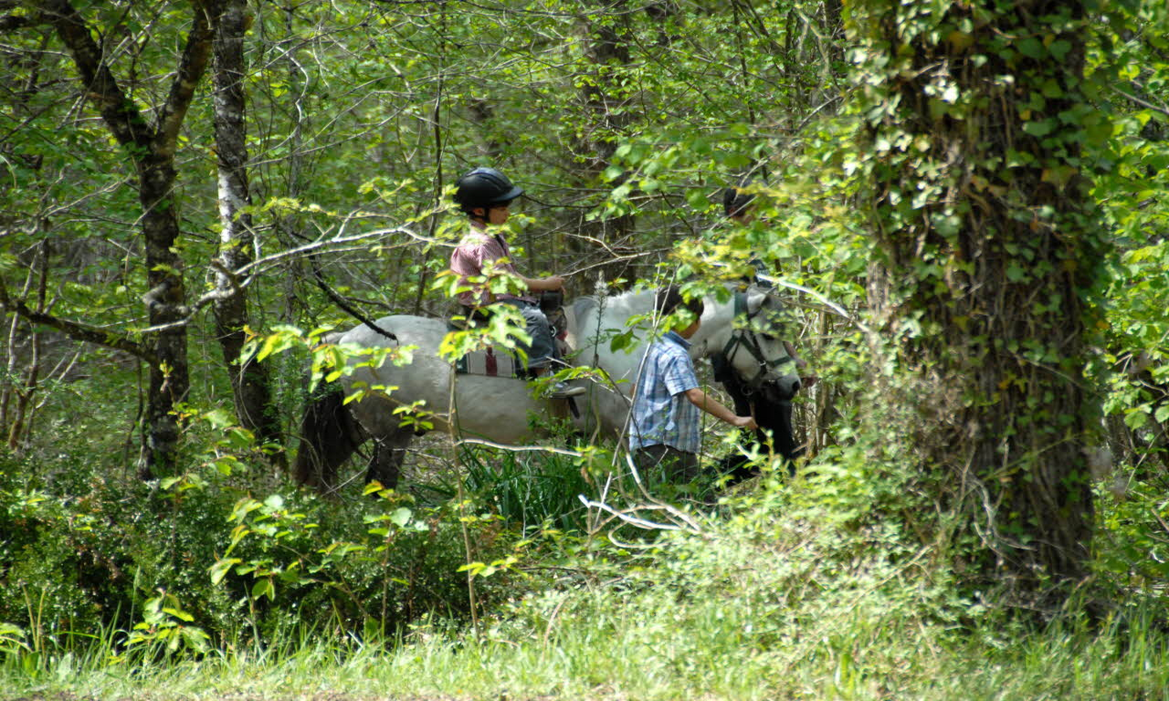 En gardant ses distances de sécurité, balade à poney à la découverte des différents arbres de la forêt.