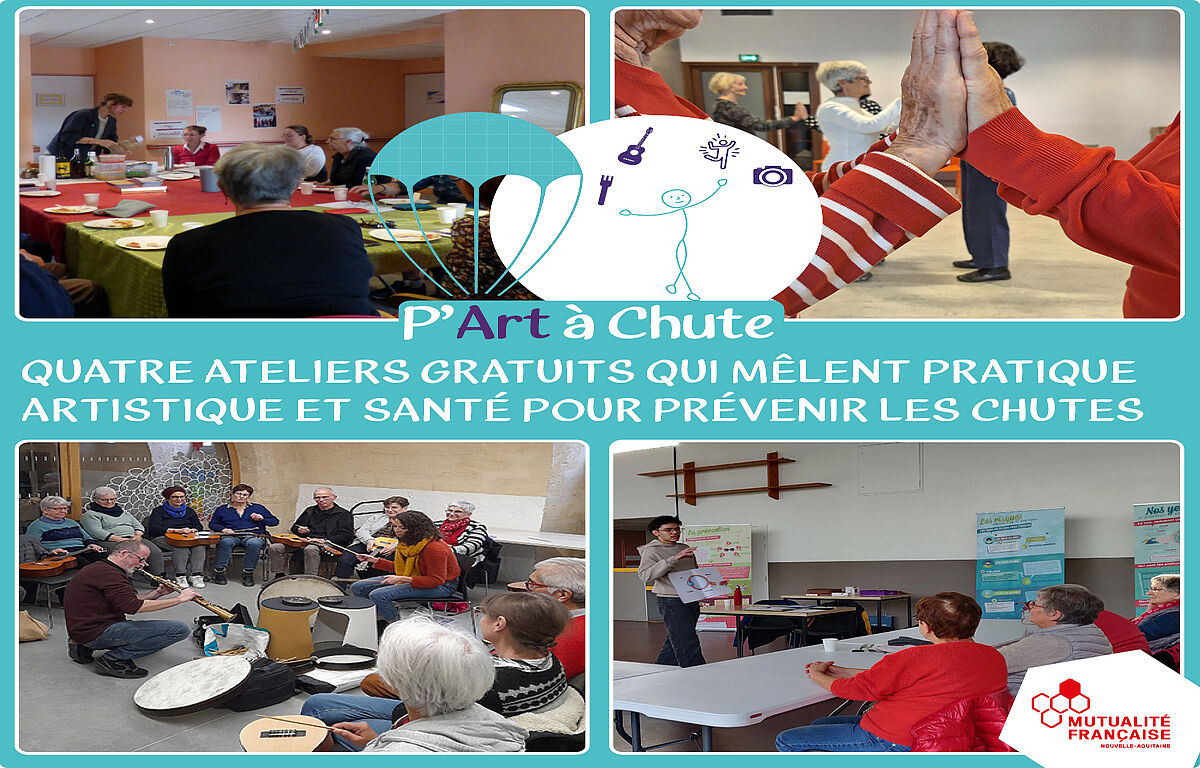 Développé par la Mutualité Française Nouvelle-Aquitaine en partenariat avec le Pôle Culture et Santé Nouvelle-Aquitaine, le programme « P’Art à Chute » propose une approche innovante : utiliser l’art pour mieux comprendre les effets du vieillissement sur les sens et le corps.