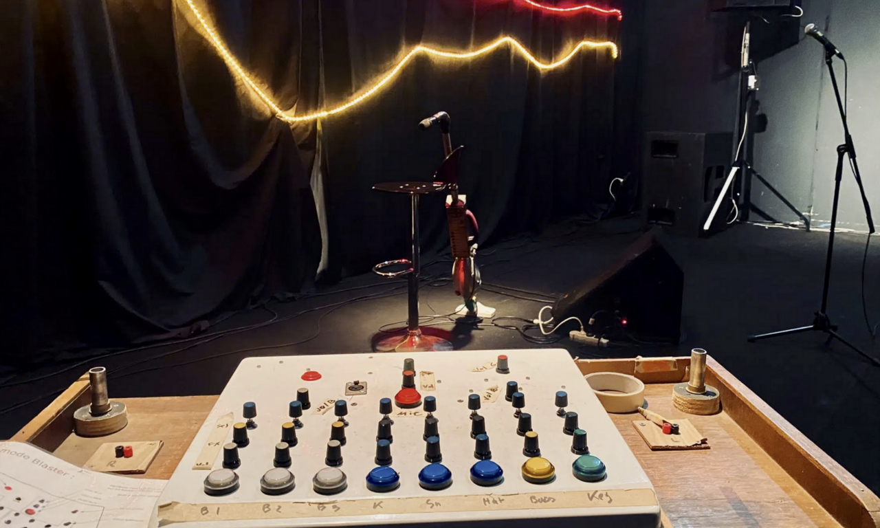 Faire de la musique sans savoir en jouer et en s’amusant ! Un aspirateur qui fait de la harpe, une commode qui fait de la techno, un synthétiseur corporel, etc. Avec les domophones - des instruments de musique électroniques, ludiques, personnalisés et accessibles à tous -, les enfants peuvent jouer avec les adultes qui les accompagnent. Cerise sur le gâteau, il y a des micros auto-tune, pour que même si on chante faux, on chante juste ! Instruments imaginés par Alain Chautard, artiste numérique et régisseur son du Lieu multiple.