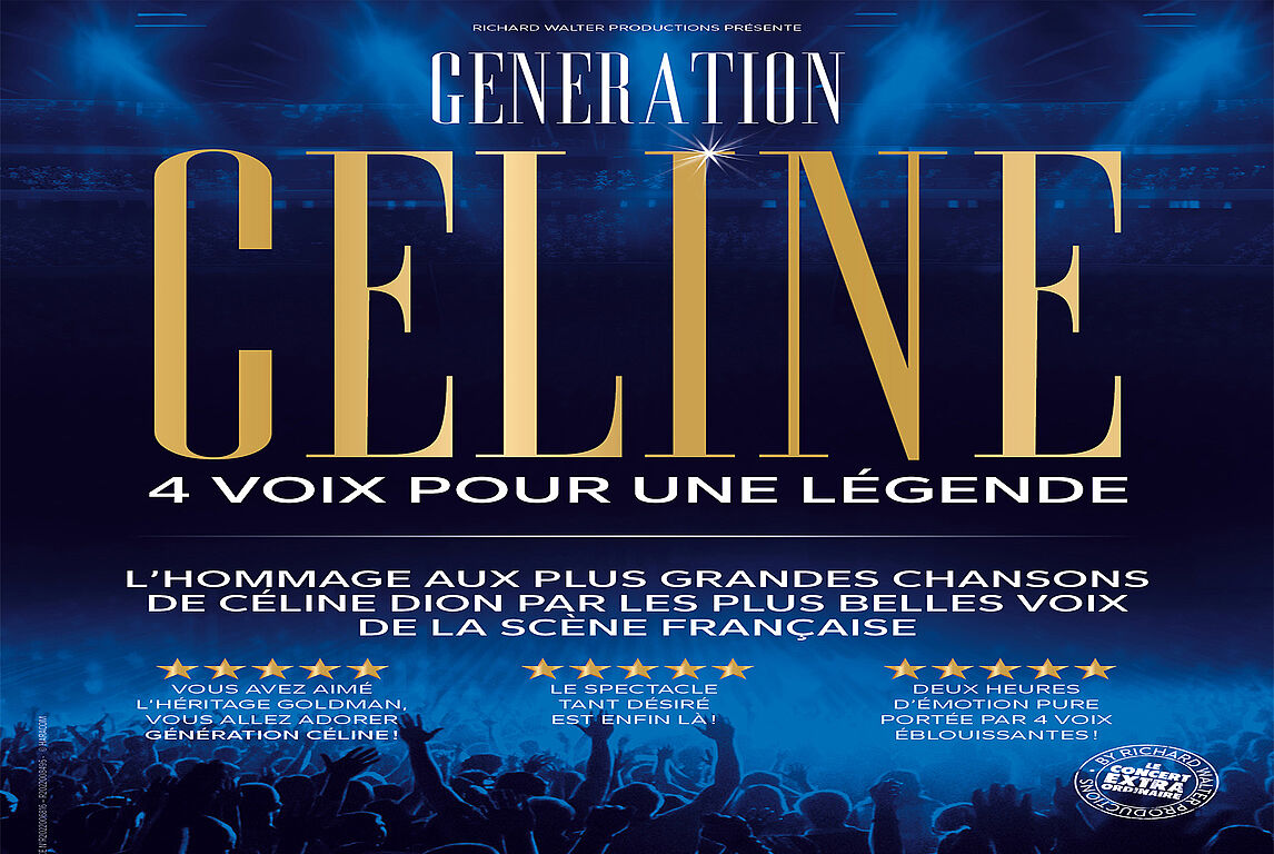Après l’incroyable succès de L’HÉRITAGE GOLDMAN, LE CONCERT EXTRAORDINAIRE nous offre un nouveau spectacle XXL : GÉNÉRATION CÉLINE !