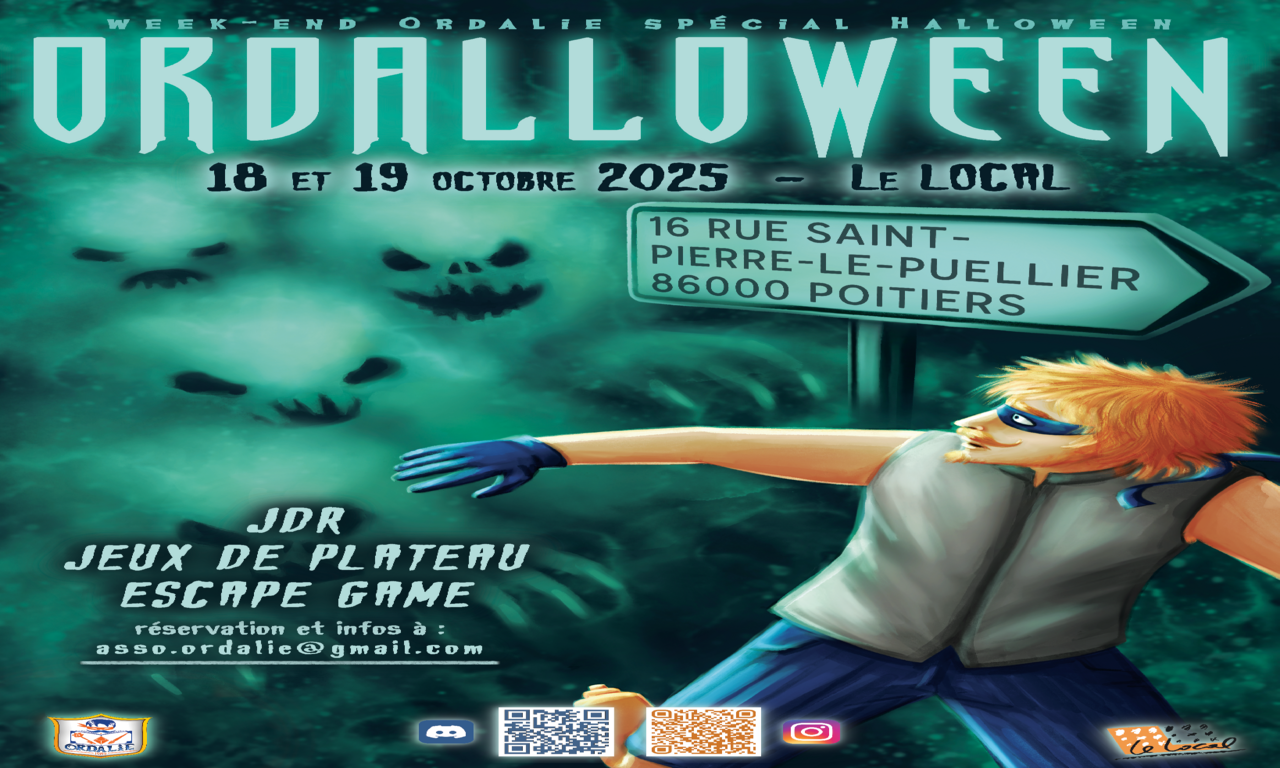 L'association Ordalie vous invite à participer à un événement exceptionnel pour célébrer Halloween : Ordalloween . Ce week-end ludique se déroulera les 18 et 19 octobre 2025 au Local, situé au 16 rue Saint-Pierre-Le-Puellier, 86000 Poitiers.