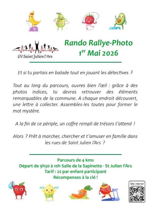 Tout au long du parcours, ouvre bien l’œil : grâce à des photos indices, tu devras retrouver des éléments remarquables de la commune. À chaque endroit découvert, une lettre à collecter. Assemble-les toutes pour former le mot mystère. À la fin de ce périple, un coffre rempli de trésors t’attend ! Alors ? Prêt à marcher, chercher et t’amuser en famille dans les rues de Saint-Julien-l’Ars ? Récompenses à la clé !