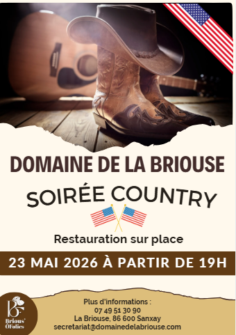 Soirée country au Domaine de la Briouse avec le club de country de Saint-Maixent-l'École à partir de 19 h, parking gratuit et restauration/buvette sur place.
