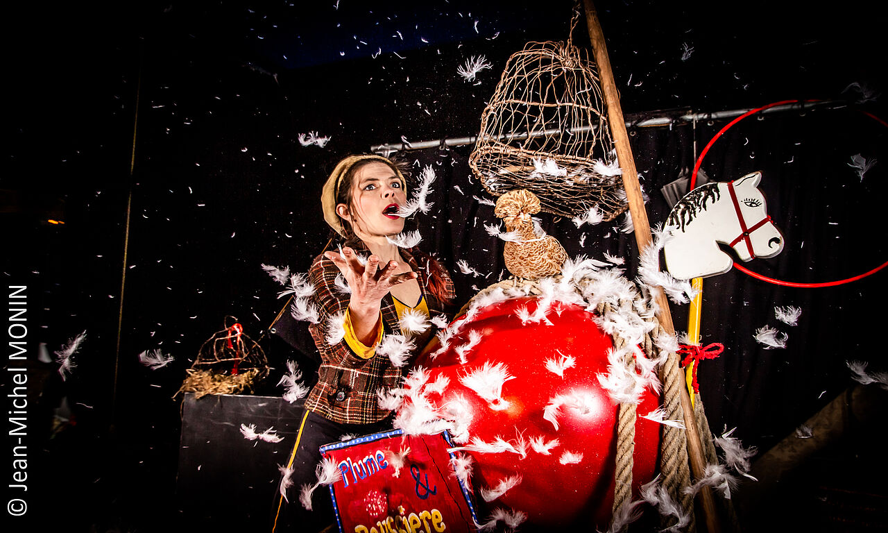 Plumes et Poussière est un parcours initiatique avec tout ce qu’il comporte d’exaltant. Entre terre et ciel, matière et éther...Un spectacle autobiographique en forme d’hommage au cirque, simple et intemporel, tout en douceur et en sourires !
