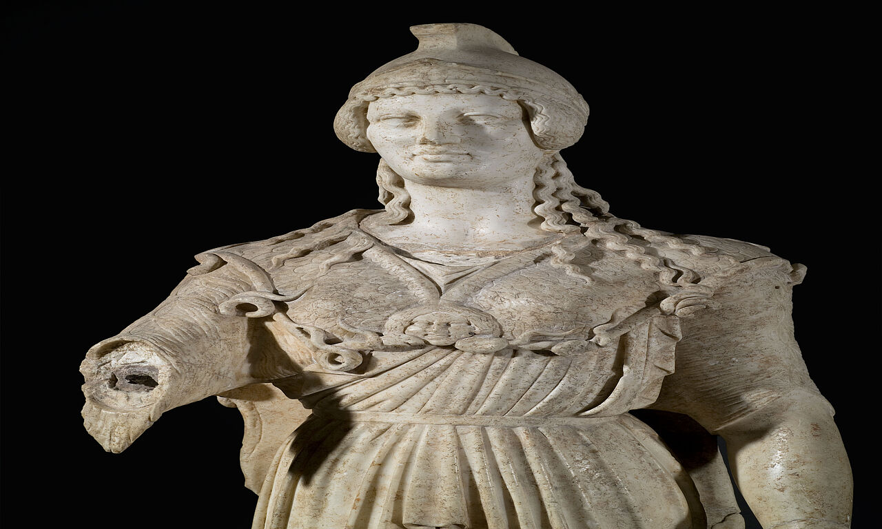 En 1902, une statue datée du Ier siècle av. J.-C. a été découverte lors de travaux de plantation menés au sein de l’école Gisèle-Halimi (anciennement Paul-Bert) de Poitiers. Haut de 1,52m, ce marbre exceptionnel représentant Athéna, déesse grecque de la guerre, de l’intelligence, des arts et de l’industrie, est aujourd'hui visible au musée Sainte-Croix.