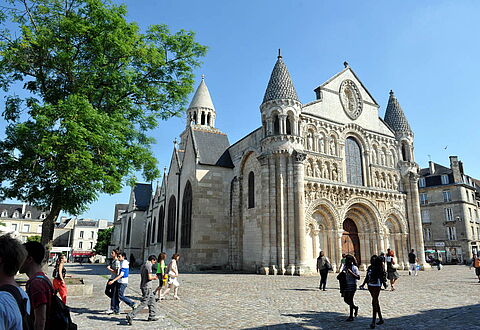 Poitiers Place Charles-de-Gaulle : église Notre-Dame-la-Grande et Maison du chantier